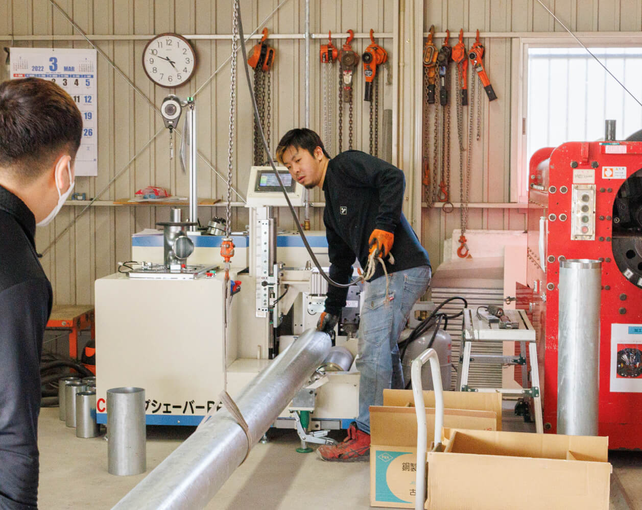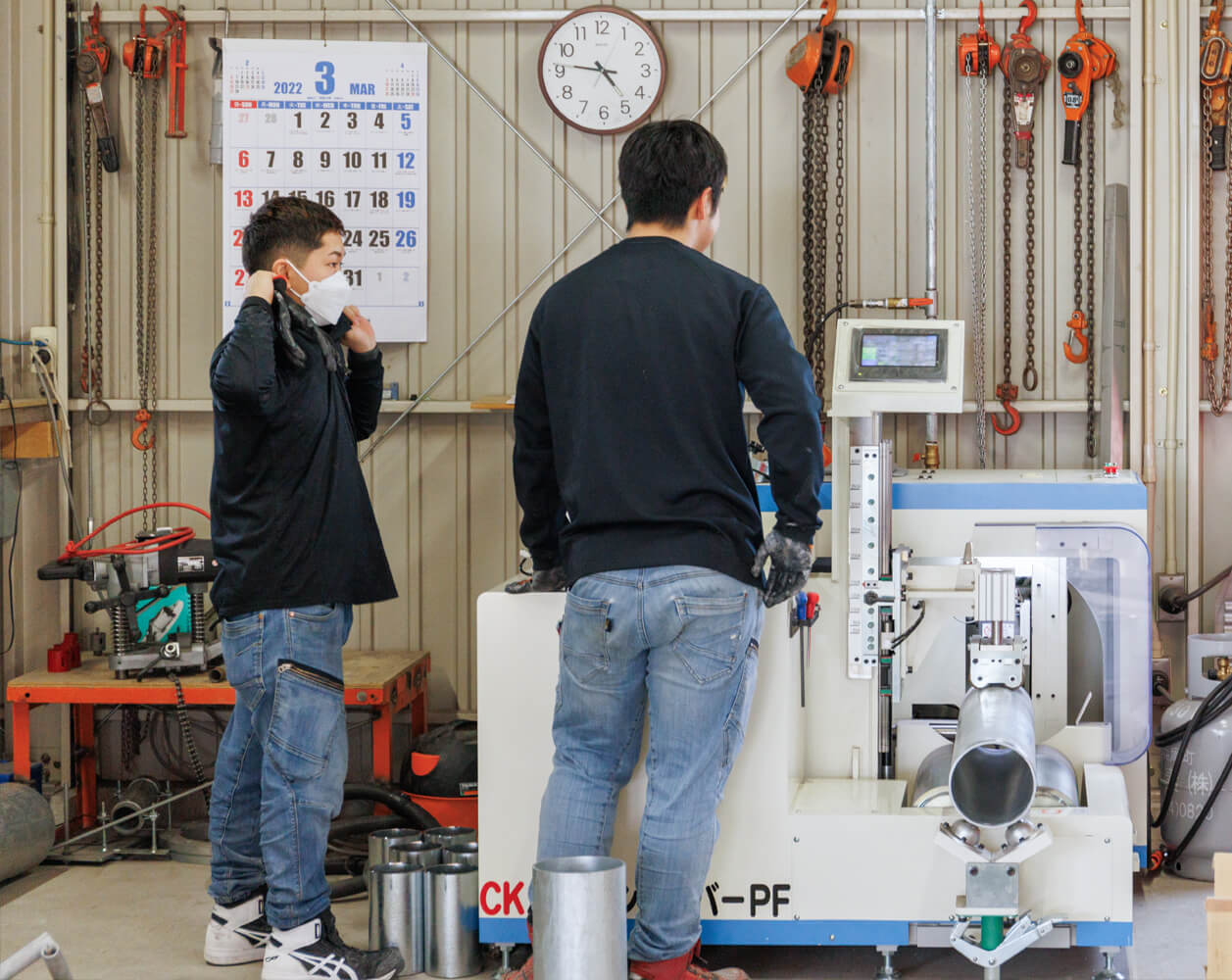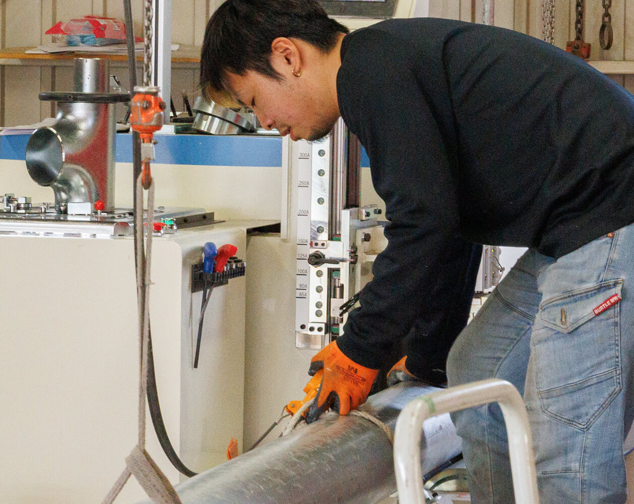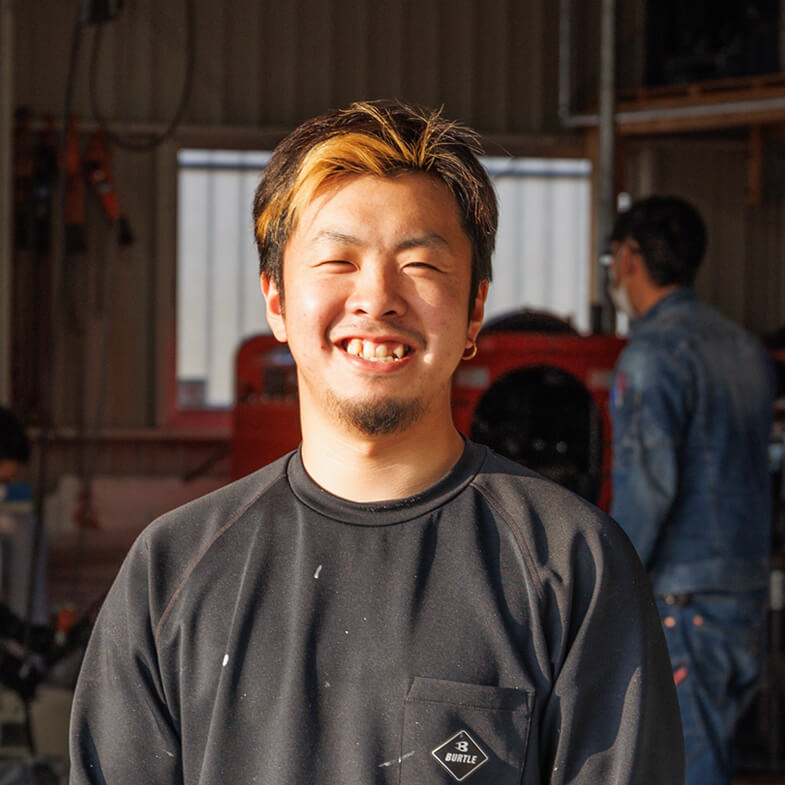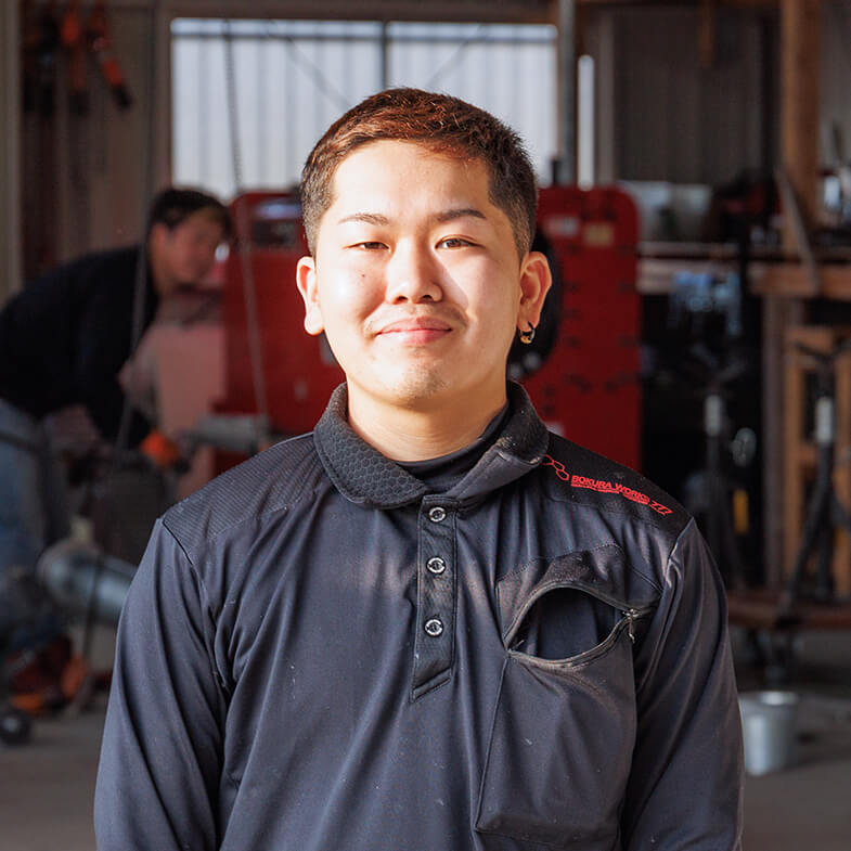 私は前職では溶接工をしていたのですが、元々配管の溶接に興味があり、友人だった山本さんの紹介で米倉設備工業へ入社しました。社員、みんなが優しく接してくれるので、とても雰囲気が良いです。分からないことがあればすぐに質問できる先輩方がいるのもありがたいです。分かるまで根気よく、教えてもらえるとき、この会社に入って良かったなと思います。